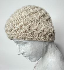 This headband also looks great over a beanie - the diamond cable hat shown is another of my patterns on Ravelry.