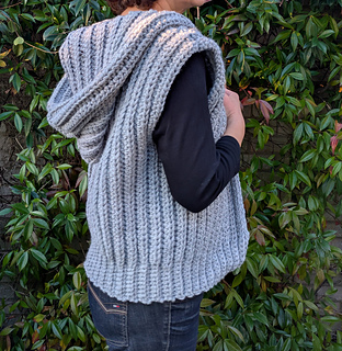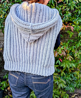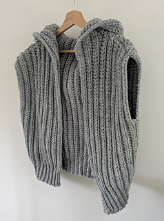 Wrap yourself in warmth and style with this modern hooded bomber vest. Designed to feel like a comfy gilet, this piece is crocheted in bulky yarn and a large hook, in one piece with minimal seaming, making it a super-quick, satisfying project—perfect for beginners and experienced makers alike.