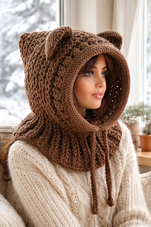 This is a listing for a PDF download for a Crochet Hooded Cowl with Bear Ears, also referred to as a balaclava.