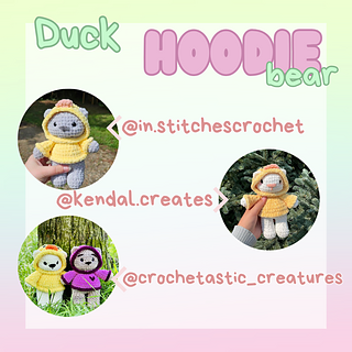 This NO-SEW pattern contains all you need to make your own hoodie bears! It also includes the expansions to turn your hood into a frog, duck, chicken and dino hood!