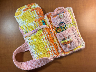The case is mainly worked using moss stitch, giving it a bit of texture while still being lightweight. The pattern is beginner friendly and includes photos to help with assembly.