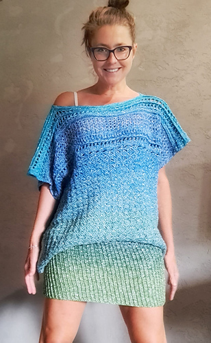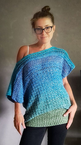 The blouse is knitted top down in two ways.