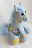 This crochet horse pattern creates a soft toy approximately 16–17 cm (6.3–6.7 inches) tall, made with semi-cotton yarn.