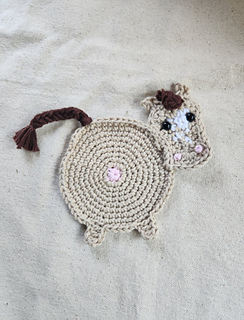 This pattern is for a peeking horse butt coaster, and it is able to be made with any medium weight cotton yarn. If you use thinner or thicker yarn, it will work up smaller or larger. I really don’t have a gauge, as different brands of cotton work up differently. It’s a pretty forgiving pattern, just use your favorite brand of cotton yarn. I can usually get 3 coasters from one 120yd skein, but it depends how tightly you crochet. If you find the pink in the center offensive, you could always just start with your main color. :slightly_smiling_face: