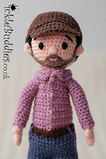 • DK or worsted weight yarn in various colours (skin tone, outfit, hair)