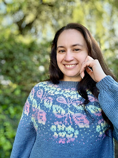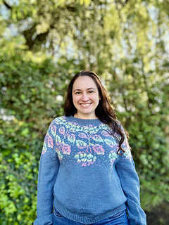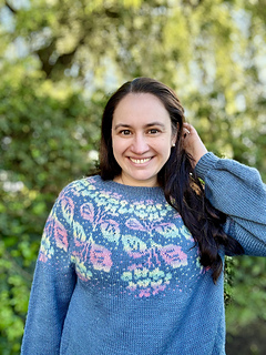 The construction is straightforward yet effective: the yoke is worked in colorwork, followed by a simple stockinette body and sleeves that let the floral pattern shine. Knit in fingering weight yarn on 4 mm needles, the result is a lightweight and versatile sweater you’ll want to wear year-round.
