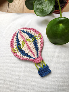 The crochet hot air balloon applique measures 7,5 cm (~3 in) in height without and 10 cm (~3,9 in) with the basket. Your crocheting style and yarn choice may affect the size.