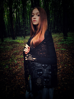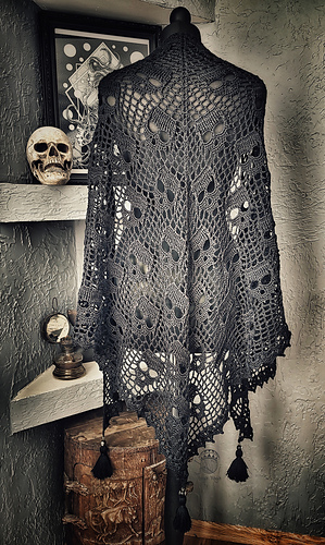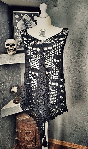 HOT SKULL is a crochet pattern for a skull-motif shawl. The pattern includes: