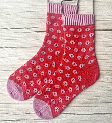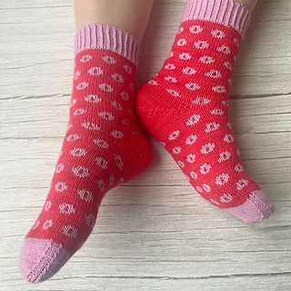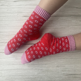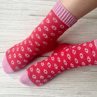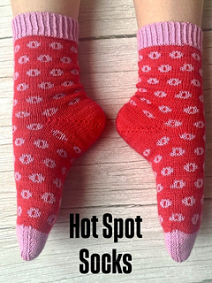 Hot Spot is a bright, bold and fun colourwork sock design aimed to bring joy every time you wear them! I love a polka dot and knitted in high energy and contrast colours these socks give a great dopamine hit. The socks are knitted cuff down and have a short row shadow wrap heel to allow for the colourwork design to flow along the leg and length of the foot.