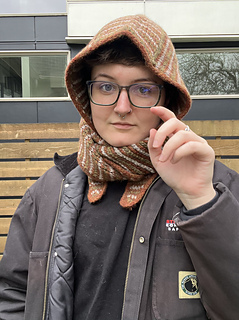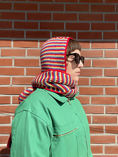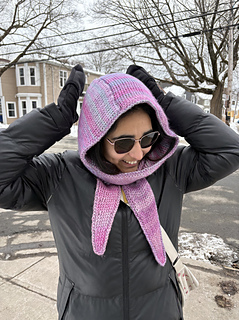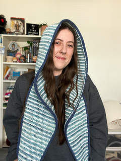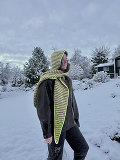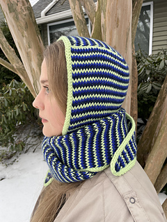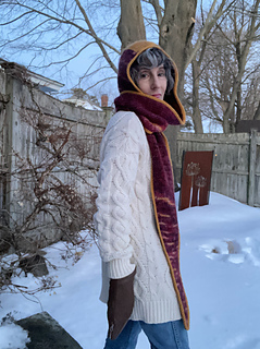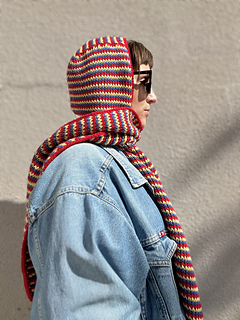 This Tunisian crochet hood pattern creates a cozy knit-look scoodie using seamless join-as-you-go construction. Designed for intermediate crocheters, this hooded scarf can be made striped or solid and works up beautifully in worsted weight yarn for a modern winter accessory. Plus the Huddle Up Hood functions as a stylish alternative to a beanie or balaclava.