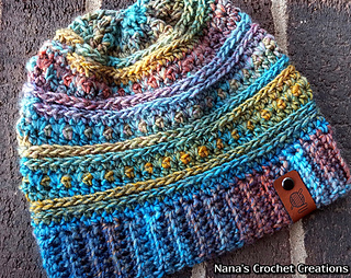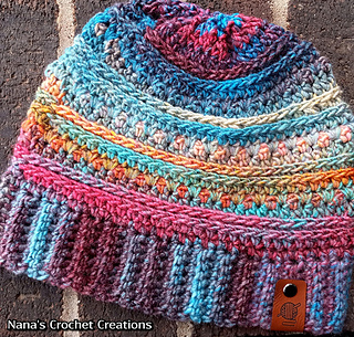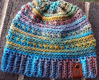 Using self-striping yarn that is allowed to transition on its own makes a beautiful and unique hat. Only having two ends to weave in is an added bonus.