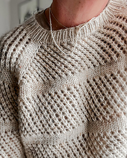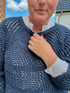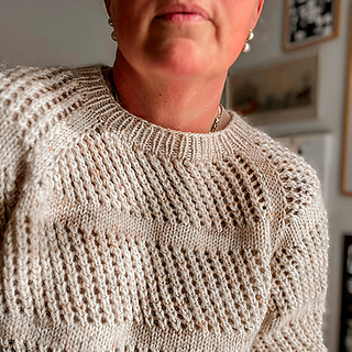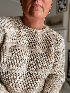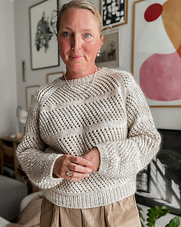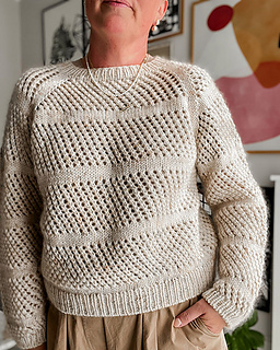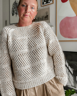 Hul Blusen is an airy sweater with an all-over eyelet pattern, broken up with stockinette stripes that help to keep its shape.