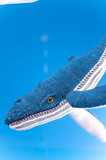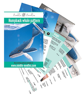 A knitting pattern for a very realistic humpback whale, which is around 33 cm/13 in long and 9 cm/3.5 in wide. A fun challenge for experienced knitters.