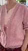 First the yoke is worked back and forth on circular needle from mid front with raglan increases and V-neck shaping. The sleeves are worked in the round with magic loop technique. Then at the end, stitches are picked up and knitted along the front edges and is worked in 1 x 1 rib. (For detailed instructions see video at Hunglish Knitter YouTube channel.) https://www.youtube.com/@hunglishknitter