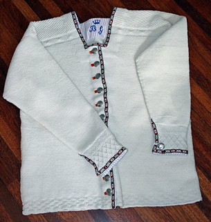 Traditional knitted cardigan “Fanatrøye”. The white version is not as common as the well known striped version, but the pattern is probably older.