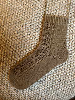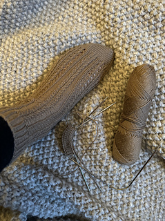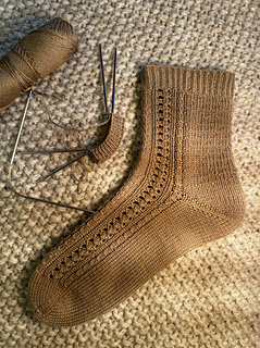 The Hygge socks are worked cuff-down and the pattern, which the complete Hygge Collection follows, is worked on the front of the leg and foot, while on the back of the leg a simple structural pattern is worked. A 1x1 cuff, shadow-wrap-heel and wedge toe are worked.