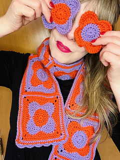 This groovy flower power scarf is great for anyone on the go since you will make separate granny squares then join them at the end. You will need 2+ colors. Coud be a great stash buster if you wanted to do more colors.