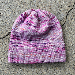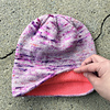 I Have a Secret is a simple DK weight, folded-brim hat with a stockinette body knit from the bottom up, featuring a bold little surprise on the inside.