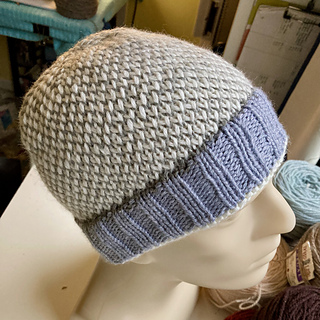 This beanie style hat is knit utilizing slip stitches, creating a subtle all over texture and making it an easy project. Slipping every other stitch on alternate rounds speeds you along.