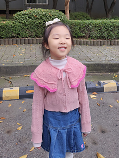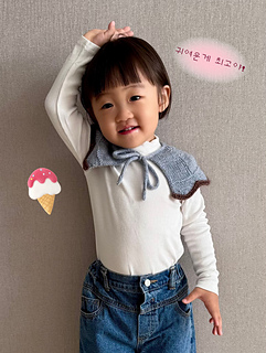 아이스크림 카라는 끈을 먼저 만들어 코를 줍고 아래로 떠내려 가는 디자인입니다. 영유아부터 어린이들까지 착용 가능한 사이즈로 디자인되었습니다. 의류 소품으로 활용이 가능할 뿐만 아니라 목과 어깨를 감싸 방한용 의류로도 사용이 가능합니다.
