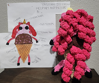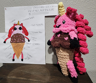 Welcome to my next pattern of the kids creation line! This drawing was of an ice cream unicorn! Imagined by my own daughter when she was 6! A 10 year old girl assisted her in the drawing. My daughter, of course, got the final creation after I was completed with the pattern (though she definitely tried to take it before it was even done!)