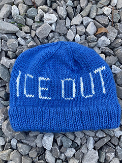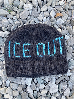 The Ice Out Hat is worked in the round from the bottom up, beginning with a k2 p1 rib folded brim. The text pattern is created using stranded colorwork and a spiral pattern of decreases is worked to create the crown of the hat. This pattern is great for adventurous beginners looking to get started with colorwork or more advanced knitters looking for a quick and fun project to use up some stash yarn.