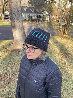 This pattern is based on the Norah Hat pattern from EmmaLouLouise, but with new charts by Nina to read “Ice Out”.