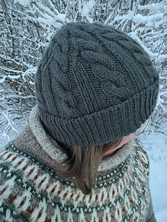 Flätan ger struktur och karaktär, medan det tjockare garnet gör mössan till ett självklart val för kalla dagar – perfekt både till vardag och vinterpromenader.