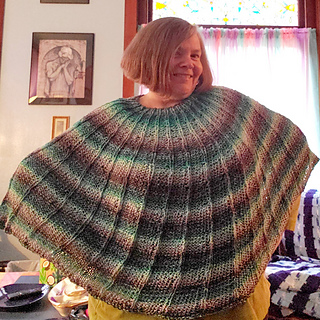 The pattern is fully written and it’s a one size fits most. The neckline measures 21”, an 18” length and the bottom circumference measures 84”. It even has a side slit, giving you even more room.