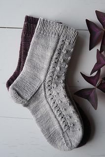 Ihanat ovat varresta varpaisiin neulottavat sukat, joiden vartta ja jalkaterää koristaa yksinkertainen nyppy- ja pitsikuvio. Nypyt sukissa edustavat neuleyhteisön jäseniä. Teitä ihania!
