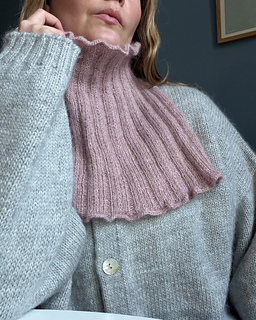 Iiris Neck Warmer is a delicate rib knit accessory that is worked in a fancy slip stitch rib from top down. The neck opening and bottom edge of the neck warmer are finished with cute ruffles. The work starts with a provisional cast-on, making it easy to adjust the height of the neck according to your own preferences. After that the work is divided into front and back pieces and knitted flat.