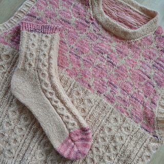 This pattern is part of the Savannah collection, which includes two sock patterns and a sleeveless sweater.