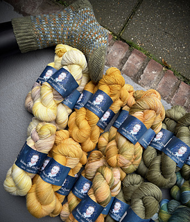The green/blue/orange version is made with colorway Cyprus and Vincent Selfportrait. The dark blue/yellow version is made with Starry Starry and Starry night above the Rhone.