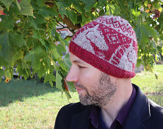 This is a pattern to knit a beanie worked using the stranded colourwork technique. It is worked from the bottom rib up with decreases shaping the crown.