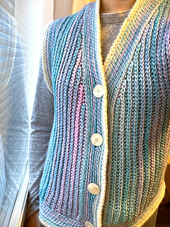 In My Dreams Vest is a drop shoulder, open-front buttons vest with a neat and simple stitch pattern.