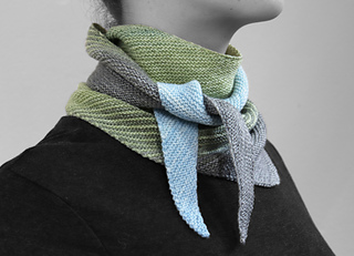 A solid and a variegated skein would create an interesting striping effect. Sock and fingering weight yarns are great for this scarf, making the pattern a great stash buster!