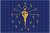 The stars on the Indiana State flag are replaced with the female symbol and the torch is morphed into a fist.