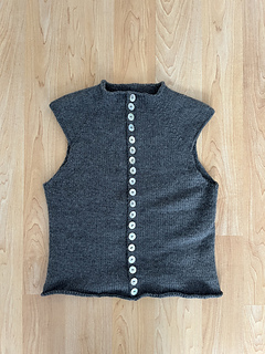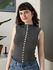This top is a take on the pinterest famous button down top, featuring a high neck, a dense button border, and a custom “panel-shaping” technique for a perfect slim fit. It is worked top-down and flat to accommodate the full-length button closure.