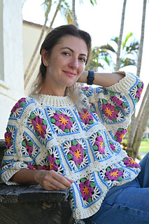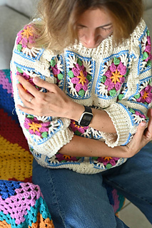 Bring color, texture, and timeless granny square charm into your handmade wardrobe with the Infinity Sweater — a bold floral crochet design that feels both vintage-inspired and fresh at the same time.