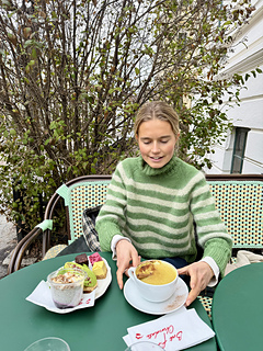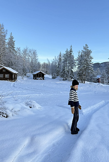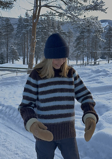 The Inga Sweater is worked top down in stockinette stitch. The yoke is worked flat at first and then joined in the round to shape the neckline. The remainder of the yoke is worked in the round with raglan increases. The sleeve stitches are then set aside, and the body and sleeves are finished separately with deep ribbed edges. The neckband is worked last by picking up stitches around the neckline and working ribbing.