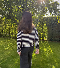 Ingeborg Sweater strikkes oppefra og ned i striber, samt med raglanudtagninger på bærestykket. Halskanten strikkes ned, og der strikkes vendepinde i nakken for at lave halsudskæring. Ærmerne strikkes rundt på strømpepinde eller med Magic Loop-teknik.
