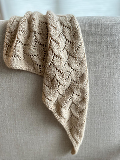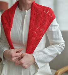 Ingrid Scarf is worked from tip to tip, first with increases on the right side and then with decreases on the right side, so the scarf takes the shape of a triangle. An i-cord edge is worked along each side while working from the chart.
