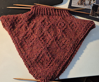 First the front and back panels are knitted flat from tip upwards.