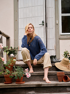 Yarn: 5 (5, 6, 6) (7, 7, 8, 9) balls of Fior di Lino by mYak (15% Italian linen, 35% baby yak, 50% Tibetan Cloud wool, 218 yds / 200 m – 50 g), in the colourway Denim.