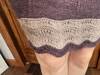 Sample is knit with Acorn and Oak Fibers Seduction (50% Alpaca, 25% Silk, 25% Linen) in Budding Maple (MC), Rose Gold (CC)