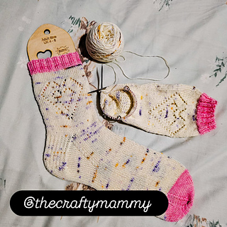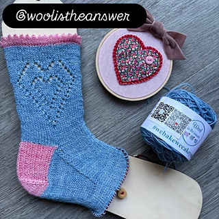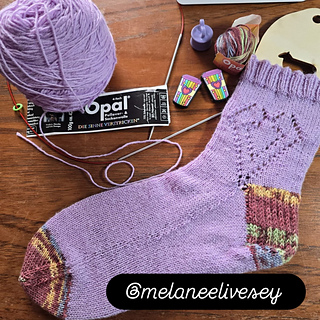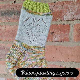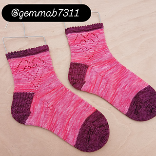 The pattern is cuff down sock with an easy lace pattern of a heart within a heart.