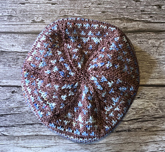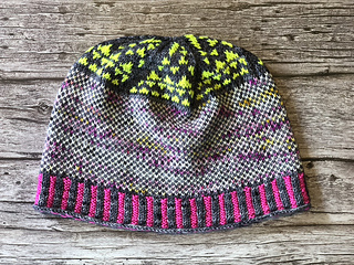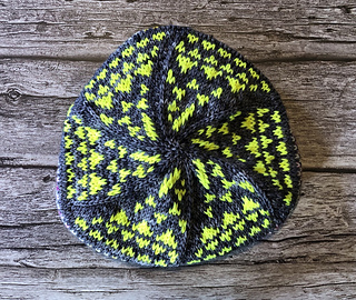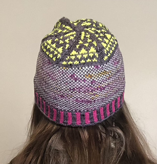 The Interstellar Hat is a colorful stranded colorwork hat inspired by Fair Isle Traditions. It is worked in the round from brim to crown with a charted colorwork pattern on the crown and corrugated ribbing in the brim.