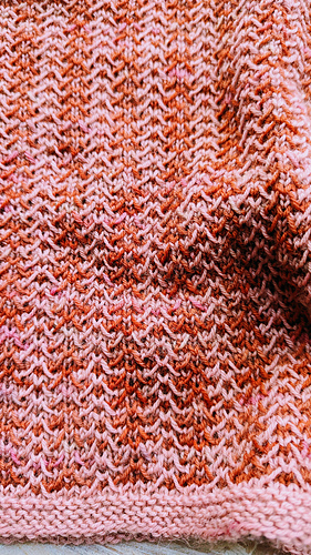I used a quarter-dyed variegated colorway with a tonal companion for this pattern to play with perpendicular lines of color, but two highly contrasting, non-variegated colors would work just as well.