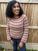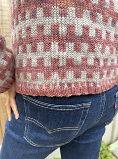 The pink and grey long sleeve sweater is a size 3 - with 7cm positive ease.
