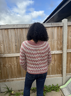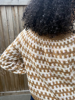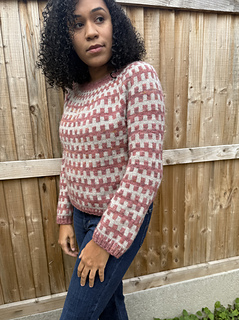 The pattern begins at the neckline, with ribbing. German short rows are then worked to add some additional length to the back of your sweater. The colourwork chart and a series of increases are worked until you have finished the yoke. Next the sleeves are put on hold, and the body is worked using the same repeated pattern, finishing with a 2x2 ribbed tubular bind-off. The sleeve stitches are then picked up and worked to a length of your choice and finished with a 2x2 ribbed tubular bind-off.